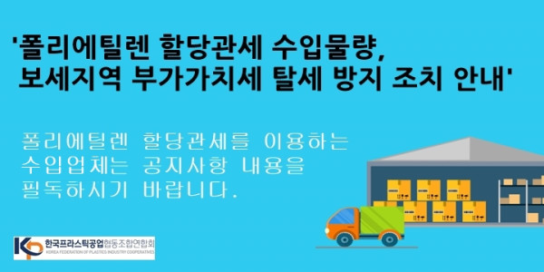 폴리에틸렌 할당관세 수입물량, 보세지역 부가가치세 탈세 방지 조치 안내