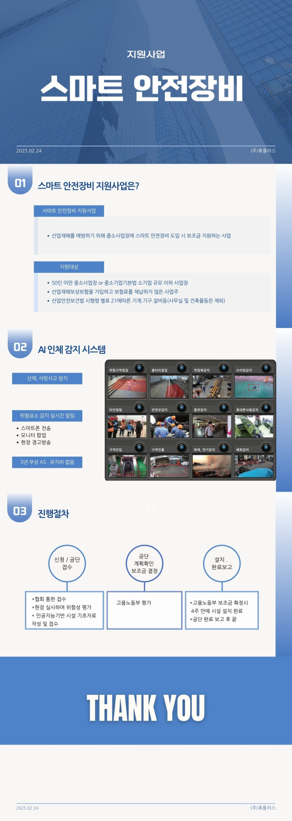 스마트 안전장비 지원사업 안내 2025-02-27 0 20008 02.27 09:13 2025.02.27 09:13 산업재해예방시설자금 보조지원 신청서 (2).xlsx (12.6K) + 1 ㅇ 문 의 : 사업지원부 정승홍 부장, 이세규 과장 (TEL : 02-2280-8220, 8221, e-mail : sklee@kfpic.or.kr)ㅇ 신청방법 : 붙임 엑셀파일(산업재해예방시설자금 보조지원 신청서)를 작성 후 회신