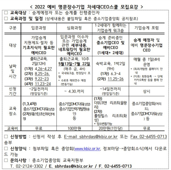 “2022 예비 명문장수기업 차세대 스쿨 교육생 CEO ” 모집안내 2022-03-31 0 21042 2022.03.31 10:00 2022.03.31 10:00 “2022 예비 명문장수기업 차세대 스쿨 교육생 CEO ” 모집안내.zip (3.1M) + 7