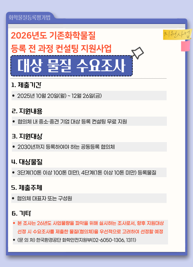 [한국환경공단] 화학물질 등록 전 과정 컨설팅 지원사업 안내